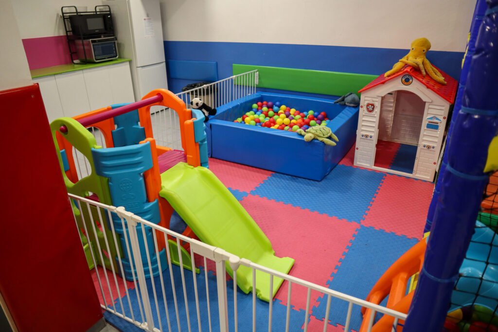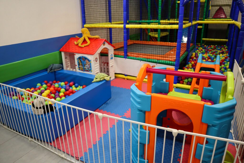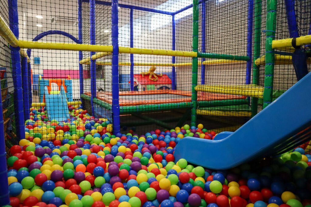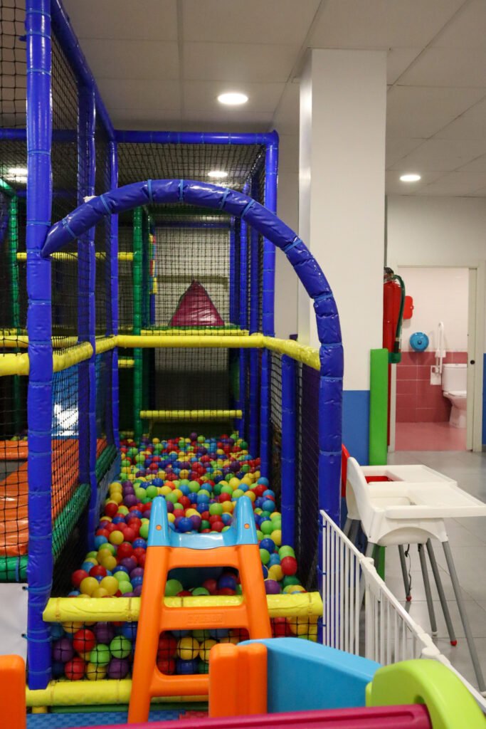 – Parque de bolas de 3-12 años con cama elástica, tobogán, piscina de bolas y gymkana – Zona hasta 3 años con 2 piscinas de bolas, estructura infantil, caseta y toboganes
